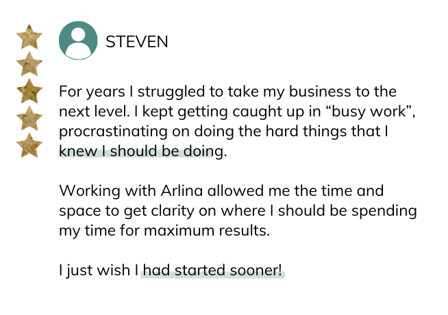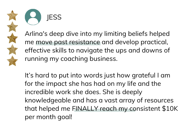 Arlina's coaching program helped me to stop self-sabotaging and develop a new empowering belief system.